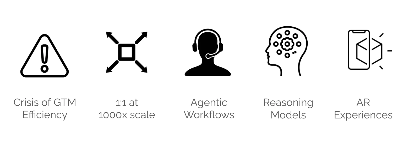 We’re at an inflection point. LLMs and agentic workflows are making a much needed rethinking of B2B GTM possible. WIth post-transformer models and AR around the corner, this leads to a generational opportunity to build a new GTM Operating System.